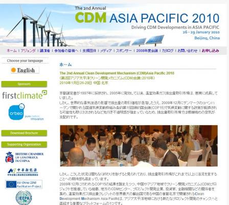 「Clean Development Mechanism (CDM)Asia Pacific 2010 」の情報を提供するとともに、会議の参加のお申し込みを承っております。