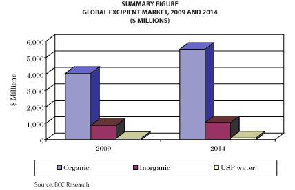 同市場は、有機賦形剤と無機賦形剤のセグメントに分類されます。有機賦形剤セグメントは、2009年に40億米ドル以上となることが予測され、その後はCAGR6.4%で拡大し、2014年には55億米ドルに達する見込みです。