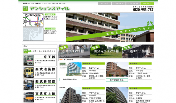 この度のWEBサイト『マンションスマイル』(http://www.mansion-smile.com/)は、首都圏の新築・中古マンション情報サイトとなっております。自社ホームページ構築支援ASP「不動産検索Lab」を利用し、ポータルサイト「いえらぶ」と連動する形で、サイトを構築しております。