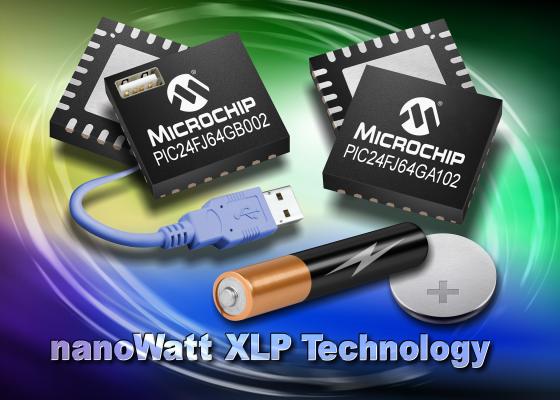 両製品とも超低消費電力のnanoWatt XLPテクノロジを採用し、小型パッケージにmTouchTM静電容量式タッチセンシングを実装しています。USBファミリはデバイス、組み込みホスト、OTG (On-The-Go)の実装が可能です。マイクロチップ社のnanoWatt XLPテクノロジは業界最小のスリープ電流を誇り、ディープ スリープ モード時の消費電流は20 nAです。これはUSB OTGを実装するMCUの中でも最も低い消費電力であり、他社製の超低消費電力USB MCUと比べて10分の1の消費電力です。