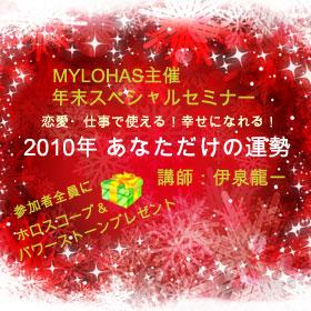 講師に西洋占術・精神世界研究家の伊泉龍一を迎え、参加者一人一人の星の配置図(ホロスコープ)をつくり、2010年の運勢を徹底的に分析。初めての方でもわかりやすい占星術の理論についてご説明します。