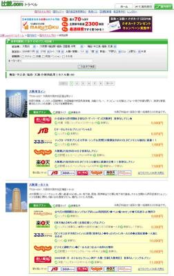 『国内ホテル比較』サービスは、2009年10月に検索結果の表示方法をリニューアルしております。日付や宿泊地を選択するとホテルごとに複数の宿泊予約サイトが提供する宿泊プランがまとめて表示され、簡単に各社のプランを比較、検討することが可能になりました。また、ホテルの外観や室内の画像を増やし、よりユーザーがホテルを選び易いようにいたしました。