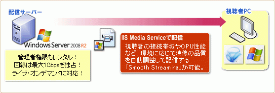 ・ Smooth Streaming オンデマンド配信とライブ配信、いずれも可能。