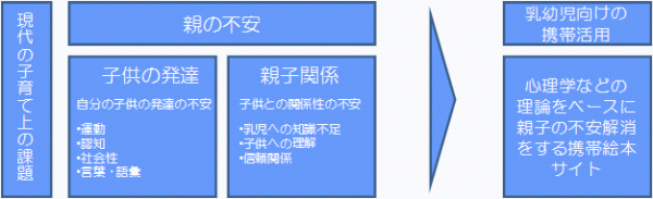 MobileMarketing.JPは、自社パネルを利用し、子どもを持つ親(有効サンプル数:250名)を対象に自主調査を行った結果、このような携帯FLASH絵本を利用したいと10代親の約80%、20代親の約60%が答え、親子で楽しめる携帯サイトを利用したいと20代親の約60%、30代親の約56%と、多くの親が親子で楽しめる携帯サイトに利用意向を示しました。そして、親と子のニーズに応える携帯サイトのサービスを開始するに至りました。