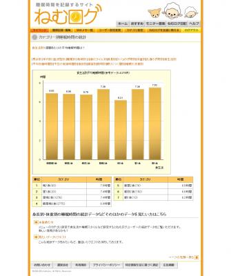 『ねむログ』は、起床時間と就寝時間を入力すると、起床・就寝時間やトータル睡眠時間がグラフで表示される無料登録制のwebサービスです。