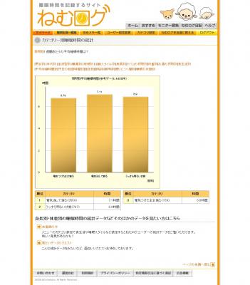 『ねむログ』は、起床時間と就寝時間を入力すると、起床・就寝時間やトータル睡眠時間がグラフで表示される無料登録制のwebサービスです。