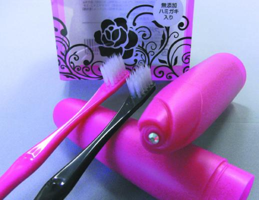「センスの良い歯ブラシケースが見つからない」というお客様の声をきっかけに、女性をターゲットにした歯ブラシケースセットを開発。バラのつぼみをモチーフにデザインされたケースの先端には、クリスタルがあしらわれ、キュートさもプラス。また、超薄型コンパクトヘッドにより丁寧に隅々まで磨きたい欲求を満たす歯ブラシを実現。