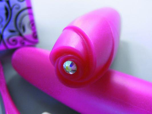 モチーフは不動の人気【バラ】バラのつぼみをイメージしたブラシケースは、クリスタル製ストーン付き。バックから見えてもおしゃれ、毎日持って歩きたくなる可愛さ。