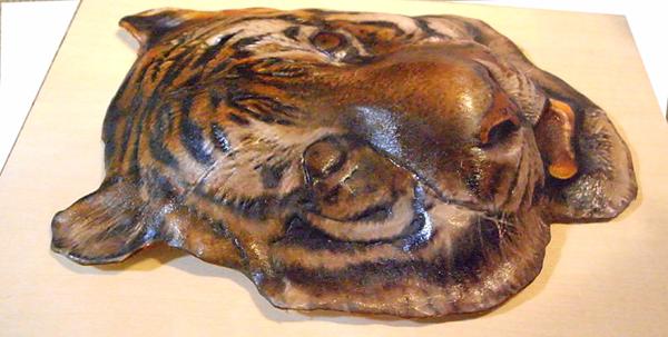 写真をそのまま立体にする技術の為、超リアルな虎のレリーフ調立体お面です。