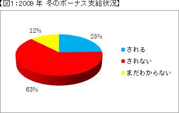 2009年の冬のボーナスの有無については、約75%が「支給されない・支給されるかわからない」と回答しており、「支給される」という回答は全体の25%ほどでした。(※図1参照)