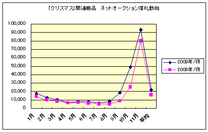 2009年のクリスマス関連商品は、9月より1ヶ月早くクリスマスグッズ落札者が多い結果となり、
