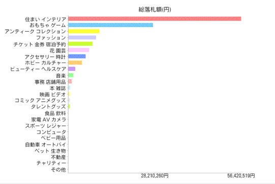 主な出品カテゴリは「住まい インテリア」「おもちゃ ゲーム」「アンティーク コレクション」となっておりました。