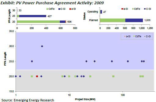 次世代エネルギー市場を専門とする米国の調査会社Emerging Energy Research(EER)が発行した報告書、「US Utility Solar PV Markets and Strategies: 2009-2020」では、太陽光発電市場における米国電力業界の戦略を詳細に分析しており、多額の費用がかかる太陽光発電施設を電力会社が整備する能力についての短期的、中期的な見通し、太陽光発電が電力会社の主な発電手段になる可能性、ネットワークとリソースに関する計画の見直しが必要になった場面で期待できる太陽光発電施設立地条件の柔軟性、ソーラーサービスプロバイダー(SSP)と独立系太陽光発電事業者(PV-IPP)に対抗するため電力会社が推進している分散発電戦略の有効性、といった問題を扱っています。