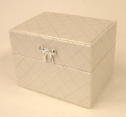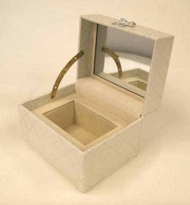洗練されたパールの輝きを放つホワイトのフェイクレザーと、キルティングを施したお花に似合う柔らかなデザインが目を惹くフラワーボックス。内装はベルベット調の生地を使い、蓋の内側には大きなミラーをセッティング。これによりアレンジされた花がミラーに映り込み、より華やかな空間作りを演出します。