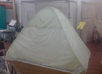 使用の面では持ち運びができ、吊るす必要のないワンタッチで自立スタンド方の蚊帳を、一人寝のシングルサイズとダブル布団にも対応できる二種類を用意し、不意の隔離用にも適用できるものとした。
