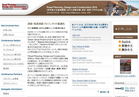 「Road Planning, Design and Construction 2010 (湾岸協力会議加盟国における道路計画・設計・建設:2010年会議)」の情報を提供するとともに、会議の参加のお申し込みを承っております。