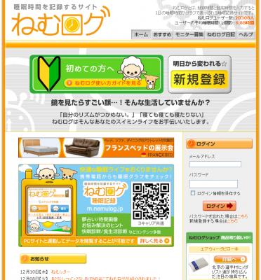 また、2009年10月中旬からは、docomo、au、softbankの3キャリア公式モバイルサイト『ねむログ★睡眠記録(http://m.nemulog.jp/)』としてもサービスを開始しています。月額利用料は126円(税込)です。会員数も着実に増えています。