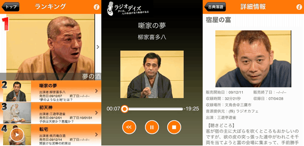 また、購入前の試聴機能や、無料ダウンロードできる落語もあるため、落語を聞いたことがないユーザにも気軽に楽しめる内容となっています。
