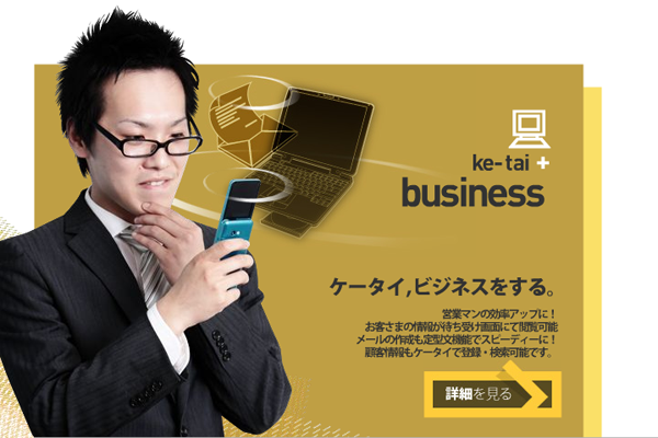 営業社員の業務効率をアップする為に開発された、営業効率アップケータイは、お客さまの連絡先や会社情報を表示できる機能があり、外出先でもタイムリーに営業を行うことができます。最大の特徴は、待受画面上に、営業活動を支援するために、次の行動を促す情報が表示され、すぐに電話やメールの送信が可能です。