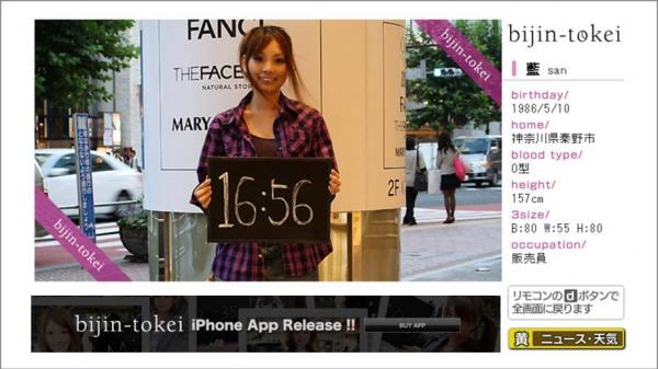 美人が1分ごとに時間を知らせてくれるウェブサイト「美人時計」を運営する、株式会社美人時計(本社:東京都渋谷区代表取締役:早 剛史)は、朝日放送株式会社(大阪市福島区、代表取締役社長:渡辺克信、以下ABC)と、時刻が書かれたボードをもつ女性の写真が1分ごとに入れ替わるウェブサイト「美人時計」地上波テレビ放送で、番組としてスタートします。