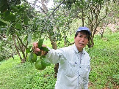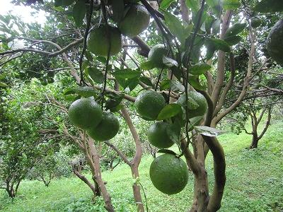 ※写真のたんかんは、まだ青いですが、月日が経つににつれてオレンジ色に変化していきます。