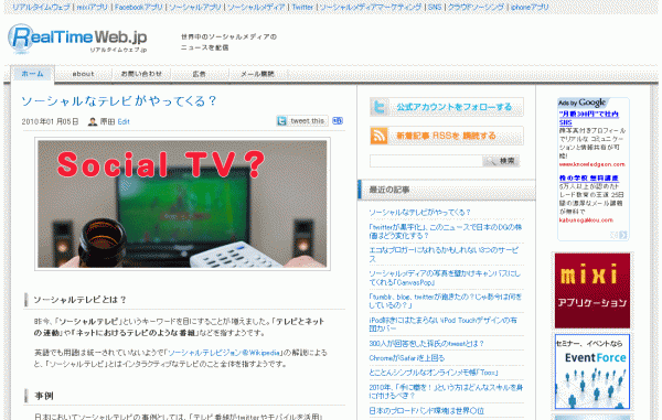 リアルタイムウェブは、国内外のソーシャルメディアに関する動向を紹介するメディアです。単なるニュースや翻訳に限らず、分析・考察を重視しております。