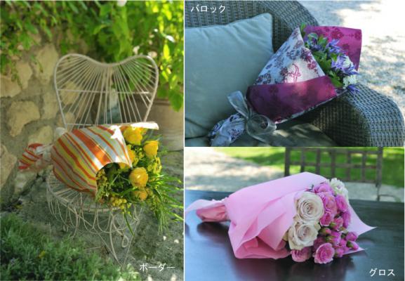 貴方のラッピングを素敵に彩る最新のペーパー。明るくてカジュアルなものからロマンチックなものまでバリエーション豊かに揃えました。グロスは定番の不織布にキラキラのラメ加工を施しました。扱いやすい素材で高級感を演出。ボーダーは発色の良いワックスペーパー。お花を摘み立てのように活き活きと見せてくれます。バロックは気品あるカラーと美しい模様で、ワンランク上の上質なラッピングに仕上がります。