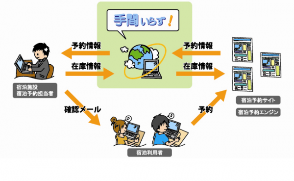 これまでは、宿泊施設の担当者がそれぞれの宿泊予約サイトや自社のホームページへ予約状況の確認や空き室情報を更新しており、担当者の仕事量が多くなるだけでなく、掲載している予約情報の把握や更新に時間がかかっておりました。