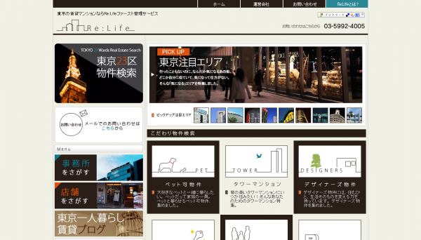 この度の『株式会社ファースト管理サービス』様のホームページ『Re:Life』(http://www.re-life1.jp/)は、東京の賃貸マンション情報満載のサイトとなっております。