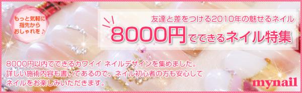 「8000円以内で出来るネイル特集」では、特集に参加いただくネイルサロンに8000円以内で出来るネイルデザインを4種類ご提供いただき、それぞれの写真・値段・コメントを掲載しております。尚、マイネイルでは、季節やトレンドに合わせた有料特集を年数回行っております。