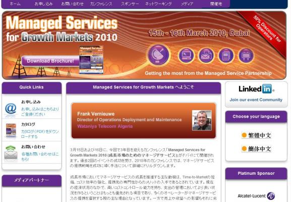 「Managed Services for Growth Markets (成長市場のためのマネージドサービス)」の情報を提供するとともに、会議の参加のお申し込みを承っております。