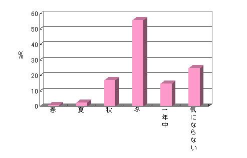 さらに年齢別に見てみると、30代は43.1%、40代は57.5%、50代は66.9%が「冬」と回答。「気にならない」の回答では、30代は33.9%、40代は20.9%、50代は19.9%と年代が上がっていくにつれて数値が下がってます。年代が高くなればなるほど、気にかけていることがわかります。