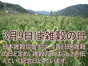 日本古来からの主食の原点ともいえる雑穀のすばらしさについて、より多くの人に知ってもらおうと日本雑穀協会が制定。日付は3と9で「ざっこく」と読む語呂合わせから。日本記念日協会にも登録されています。
