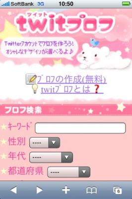 twitプロフでは、Twitterアカウントだけで手軽に『プロフ』を作成し、他ユーザーの作成したプロフを年代や都道府県、男女別タイプなど細かい条件で検索することができますが、今後はiPhoneでもプロフの作成および閲覧を快適に行うことができます。