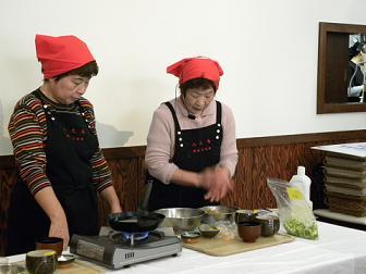 そして、2部では、八丈島漁業協同組合の女性部長、山下ミヤ子さんと奥山喜久江さん(同事務局長)をゲストに、島料理の魅力を伝える家庭でも作れる郷土料理の実演を実施。八丈島で2月~5月にとれる旬なトビウオを使ったさつま揚げやすり身汁、またくさやにも用いられるクサヤモロ(青ムロ)と呼ばれるムロアジを使ったメンチカツや餃子、そして高級魚のオナガダイの島寿司など、八丈島を代表する郷土料理を振舞い、八丈島の食文化の魅力をPRしました。