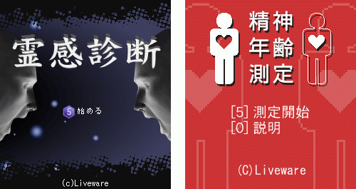 精神年齢測定, 霊感診断, ストレス度診断, 浮気度チェック, ヒーロー診断, 偽善者診断, 働く男女のサクセス診断, エージェントオガワ, the Room HOTEL, コロコロスイッチ, スイッチクッキング, 浮気裁判, ホスト 1/2, 狩メイカー, 合コン危機一髪