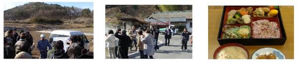 ツアーには、様々な業種から5チーム合計49社(79名)の企業の方がご参加いただき、耕作放棄地の見学、地元資源の視察、地元食材を使った昼食など各チームごとに趣向を凝らした内容のツアーを行いました。参加者からは、「地域の方と直接交流できてよかった」「耕作放棄地の現状、地域の資源を見ることができてよかった」「他の地域も見てみたい」といった感想をいただきました。また、NHKニュースの取材を受け、ツアーの模様が放映されました。今後は、企業の皆様の声にもお応えし、2月10日にシンポジウムを開催致します。全ての地域のツアーの成果報告と、企業と農村との連携についてのパネルディスカッション、地元の方との交流会を行います。ぜひ、皆様のご参加をお待ちいたしております。