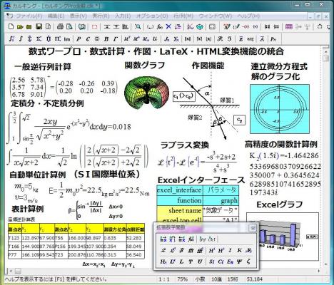 株式会社シンプレックスでは2007年8月に発売した数式処理/ドキュメント作成ソフト「カルキング8」に改良を重ねよりアップグレードした「カルキング プロフェッショナル」(http://www.simplex-soft.com)を2009年9月4日より販売しております。「カルキング8」「カルキング プロフェッショナル」は共にパソコン上で、手で書くように数学の記法通りに入力でき、SI国際単位に準拠した単位計算/基本演算/文書/作図/表計算/2D/3D/陰関数グラフ/両対数グラフ/プログラミング/統計等作成が可能で、ユーザーのイメージを即座にディスプレイに再現が簡単にできるWindows7 / Vista / XPに対応した数式計算ソフトです。論文作成・レポート作成・技術計算まで可能ですので、大学や研究機関に在籍する方からエンジニアの方に至るまで幅広いユーザーの要望に応えます。