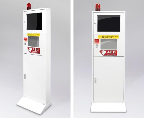 AED収納部にはセンサーがついており、扉をあけた際にアラームと赤色回転灯で周囲に注意を促します