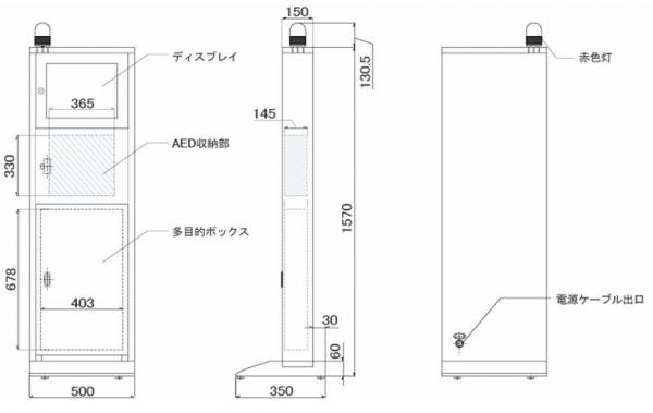 AED収納部は365×330×145(W×H×D単位mm)の容量を確保しており、