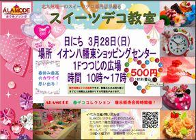 テレビで紹介されることも多くなったフェイクスイーツ&スイーツデコであるが、九州ではまだ実店舗が殆ど無く、実際に多くの作品に直に触れ、スイーツデコの魅力と作る喜びを味わってもらえるよう、ALAMODEでは出張教室にも力を入れていく方針。「ALAMODE春デココレクション2010」と題して、最新作のALAMODEオリジナルスイーツデコの展示販売も行う。イベントチラシダウンロードはこちら