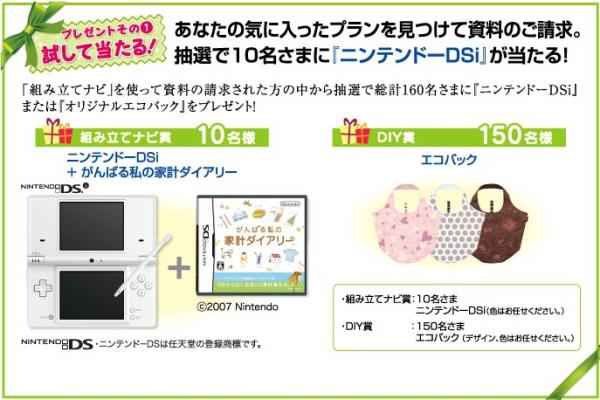 (1)『組み立てナビ』を使って資料請求されたお客さまの中から、抽選でニンテンドーDSiなどをプレゼント。