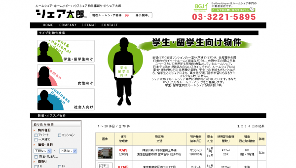 この度提供したWEBサイト『シェア太郎』(http://www.room-share.jp/)は、ルームシェア物件専門の賃貸情報サイトとなっております。