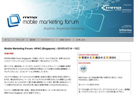 「Mobile Marketing Forum Asia 2010」の情報を提供するとともに、会議の参加のお申し込みを承っております。