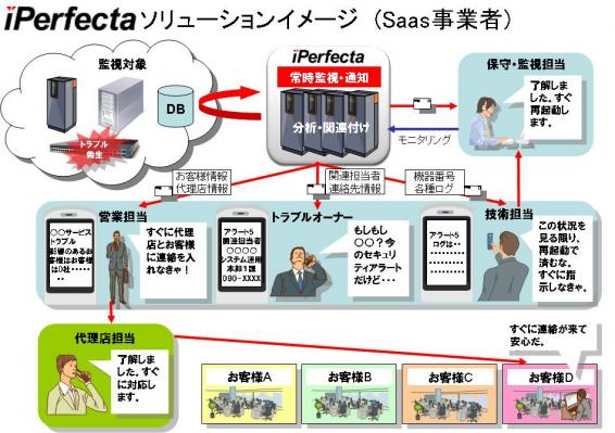 iPerfectaは問題を分析し、欲しい人に欲しい情報を即座に送るだけでなく、過去のトラブルの教訓を分析し、帳票化する等様々な機能を有した、監視イベント情報通知+予防保全ソリューションを実現することが可能です。