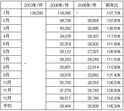 調査期間は2008年2~12月、2009年1~12月、2010年1月期間を比較いたしました。