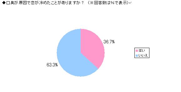 実際、「口臭が原因で恋が冷めたことがありますか?」という質問に対しても、なんと4割近くの人が「はい」と回答。口臭が別れの原因となってしまう可能性も非常に高いといえるでしょう。