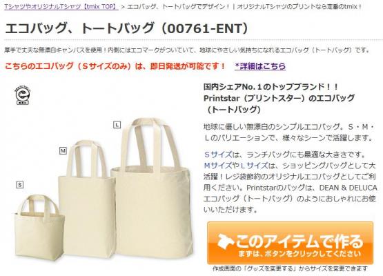 エコバッグの中でも一番人気のあるSサイズを即日発送商品に追加いたしました。