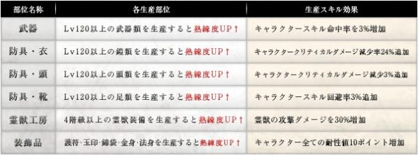 これまでの生産システムは装備や各種成長アイテムの生産や、