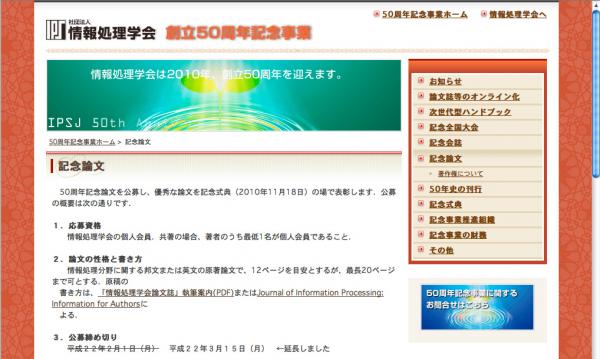 創立50周年記念論文応募要領:http://www.ipsj.or.jp/50anv/journal.html